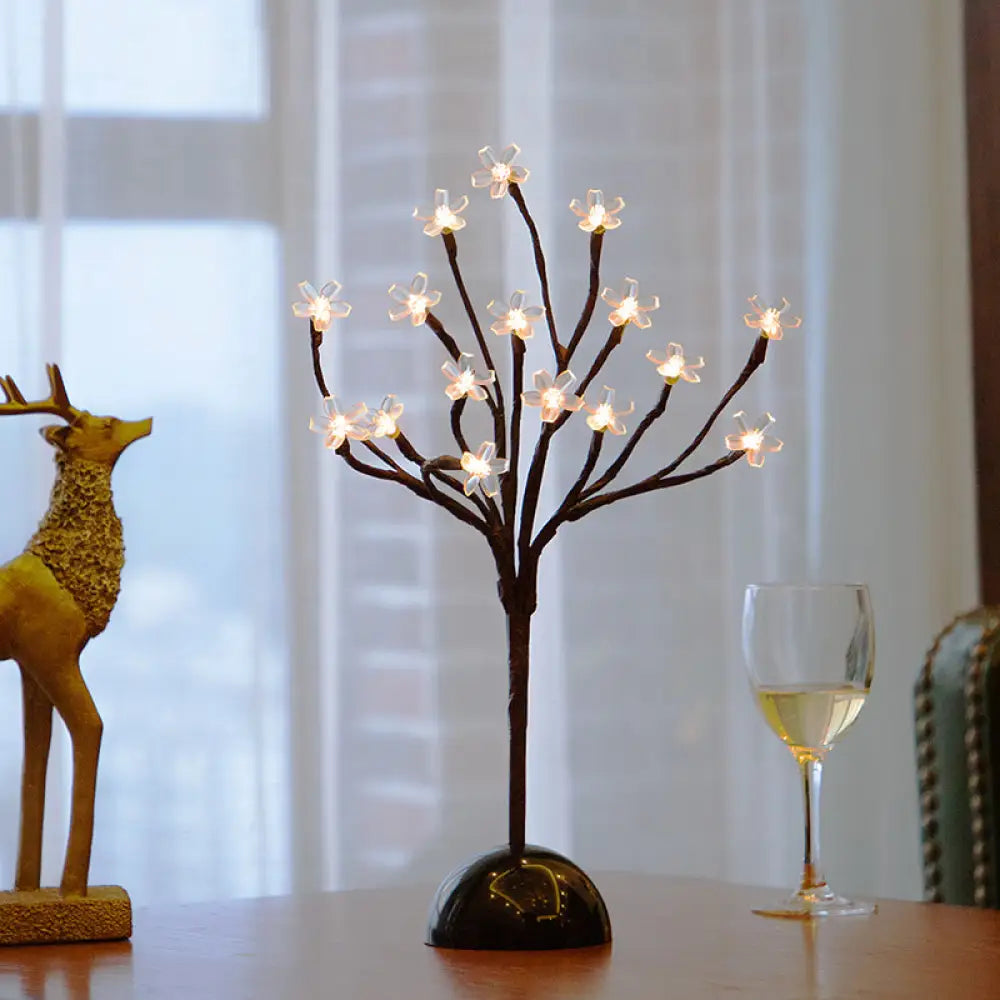 Black Cherry Blossom LED Night Light with Clear Plastic Shade – Perfect Décor for Bedroom Nightstand
