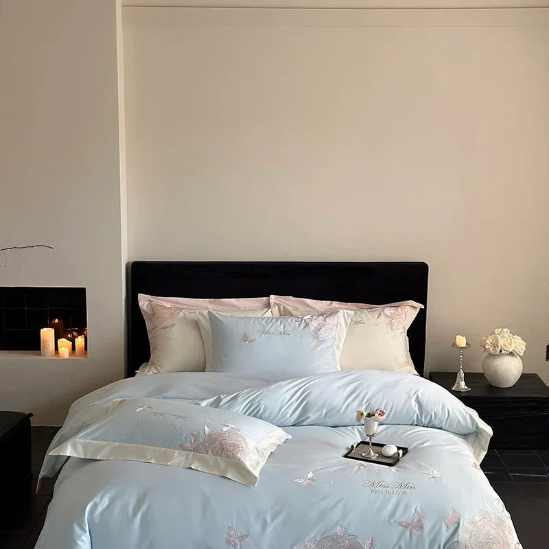 DecorBites™ 1000TC Egyptian Cotton Butterfly Flowers Embroidery Bedding Set