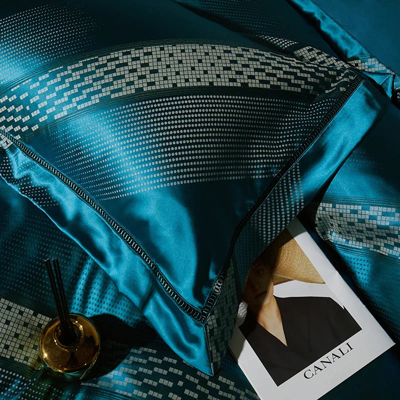 DecorBites™ 1000TC Egyptian Cotton Satin Jacquard Patchwork Bedding Set - Full Queen King Size