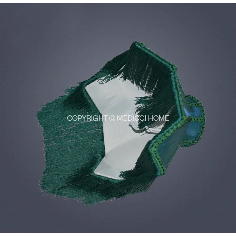 DecorBites™ Art Deco Malachite Green Silk Lampshade with Tassels