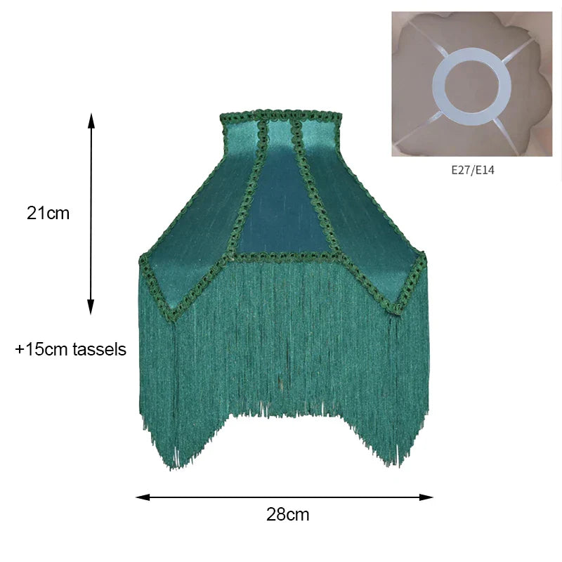 Crafted from luxurious silk in a stunning malachite green hue, this lampshade adds a touch of sophistication to your decor. The intricate tassels further enhance its beauty, creating a captivating play of light and shadow when illuminated.
