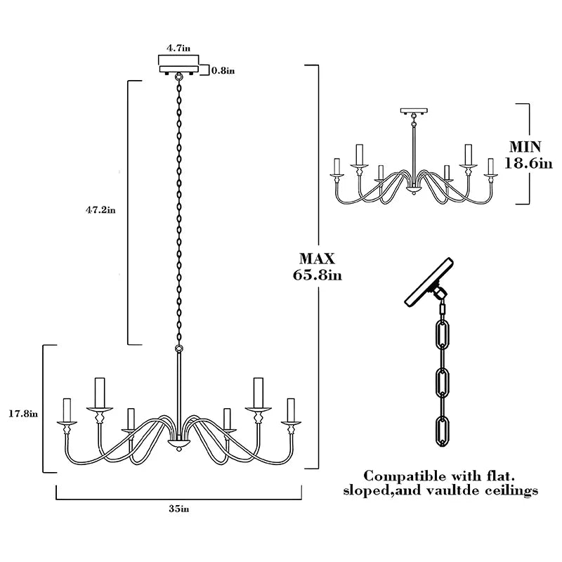 This chandelier is designed for easy installation with a flush mount style, making it a practical and stylish lighting solution for your home. The Decorbites Black 6-Light Chandelier is perfect for traditional spaces, adding a touch of old-world charm and character to your decor.