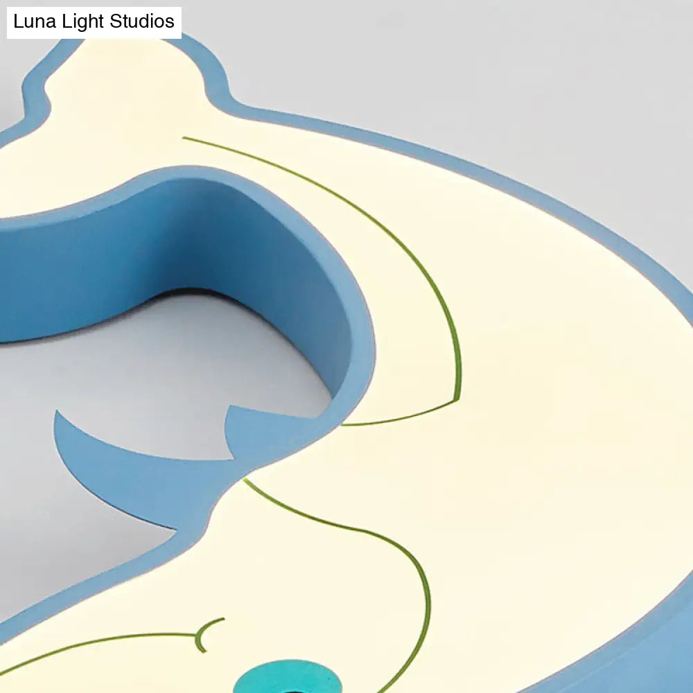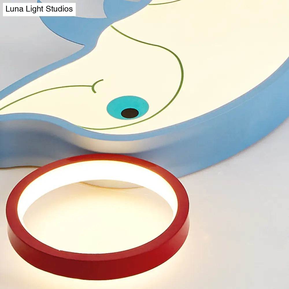 DecorBites™ Blue Dolphin LED Flush Pendant Light for Kids - Modernist Style, Acrylic Shade, Close to Ceiling - 14"/16.5" Width
