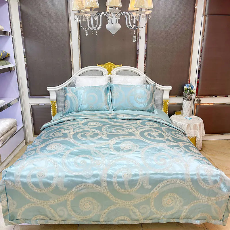 DecorBites™ Blue Satin Jacquard Queen Duvet Cover Set with Sheet & Pillowcases
