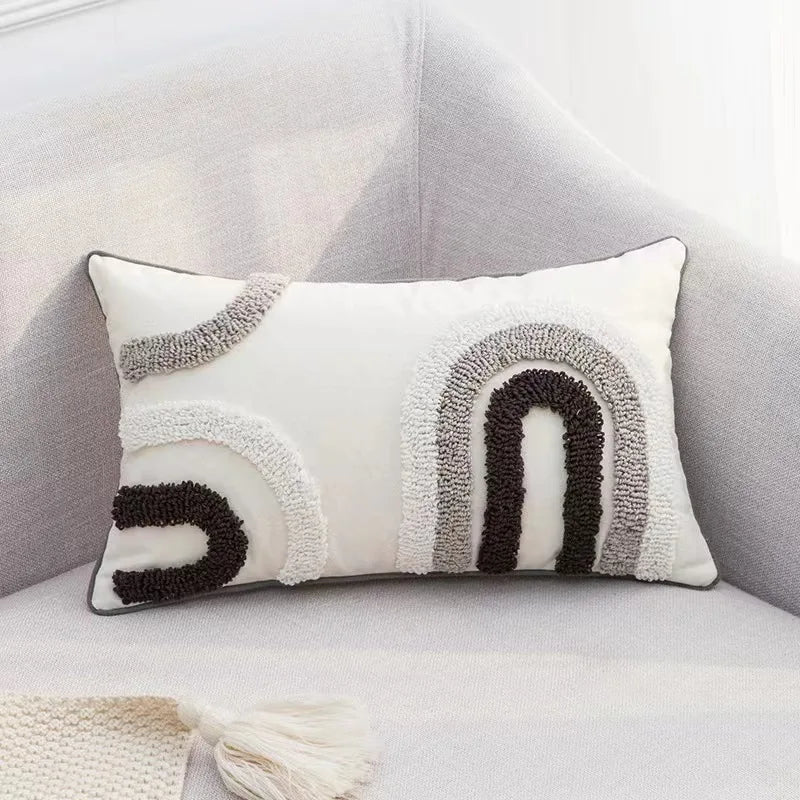 Immerse yourself in the elegance of this exquisite cushion cover, featuring a unique geometric pattern and intricate embroidery. The off white loop tufted design adds a touch of sophistication, making it a perfect choice for adults looking to enhance their seating comfort.