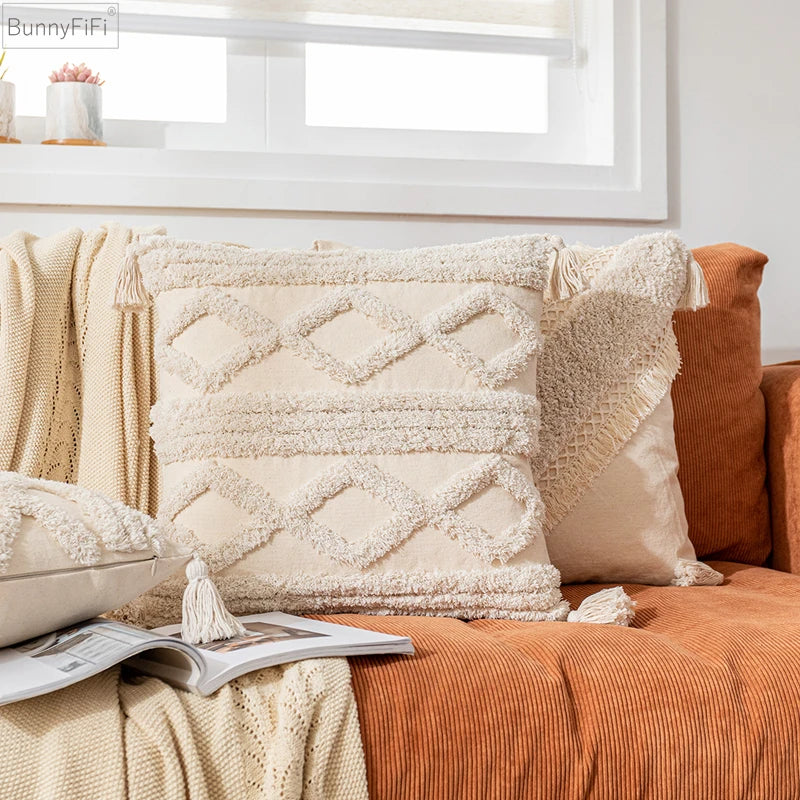 DecorBites™ Boho Cotton Tassel Pillow Cover 45x45cm/30x50cm for Home Decor