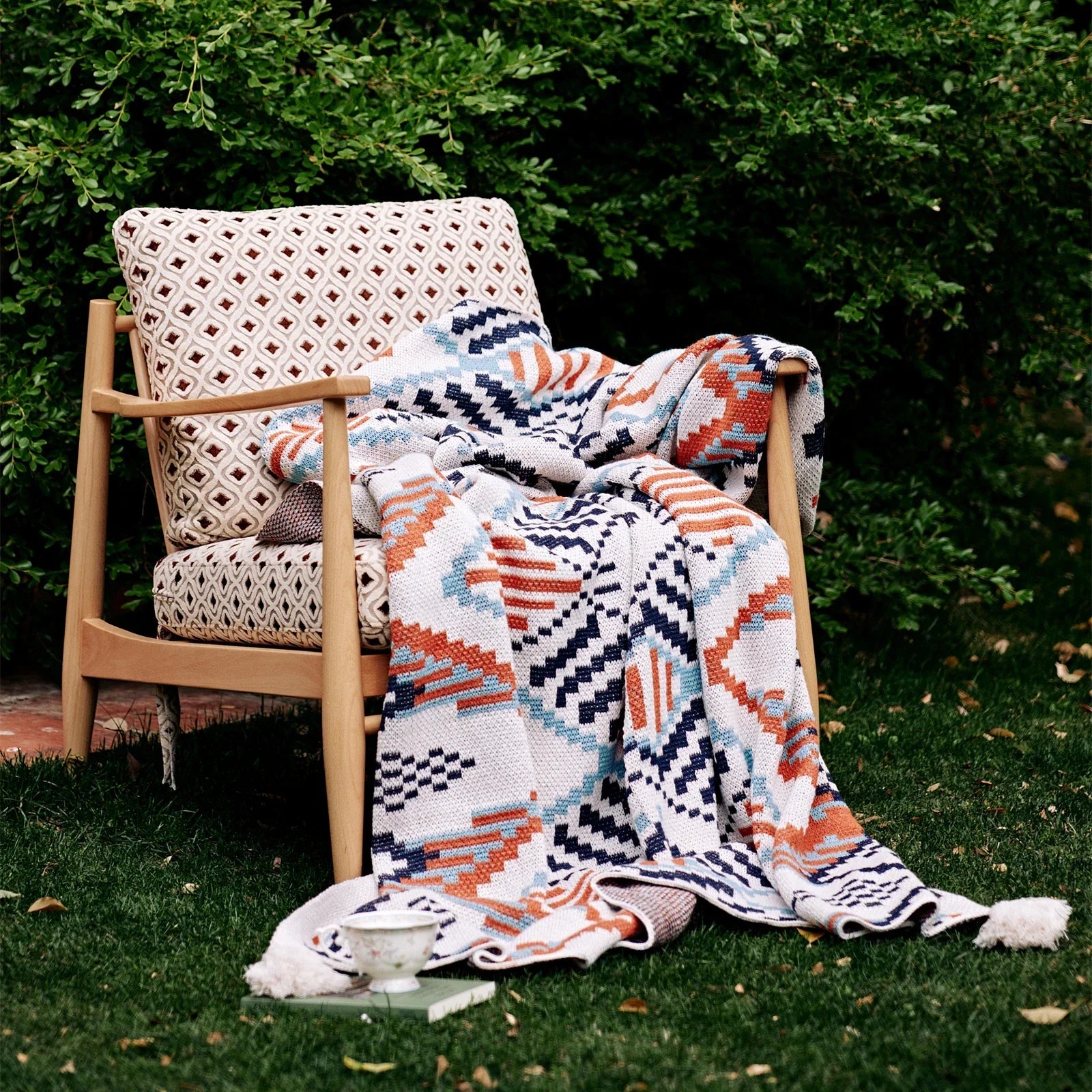 Embrace the unique jacquard style of this rectangular blanket, featuring a trendy geometric pattern that adds a touch of sophistication to any space. Whether you're cuddled up at home, enjoying a picnic in the park, or traveling on-the-go, this versatile blanket is the perfect companion.
