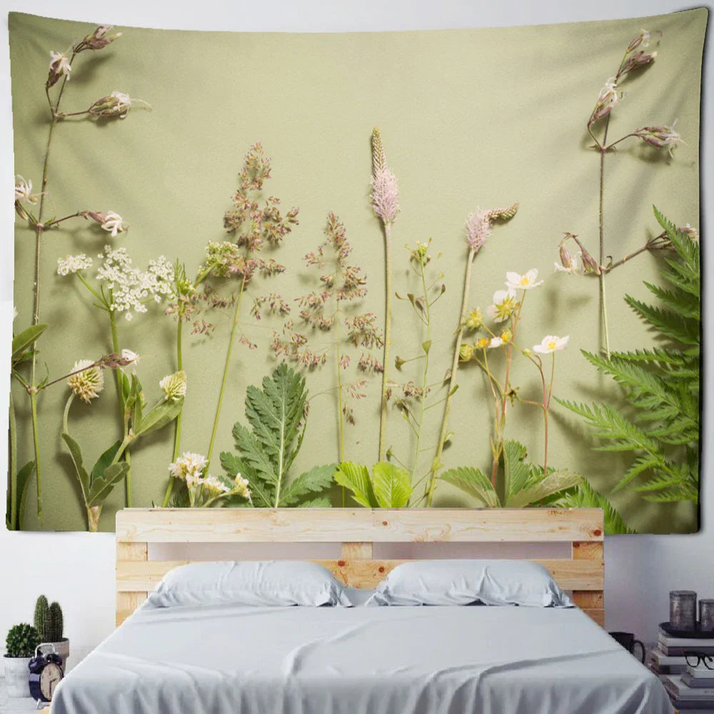DecorBites™ Boho Green Leaf Tapestry Wall Hanging - Natural Plant Landscape Home Decor