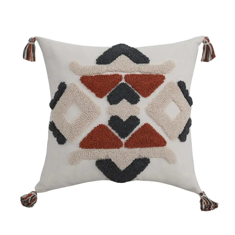 DecorBites™ Boho Style Embroidered Pillow Cover with Tassels for Living Room & Bedroom
