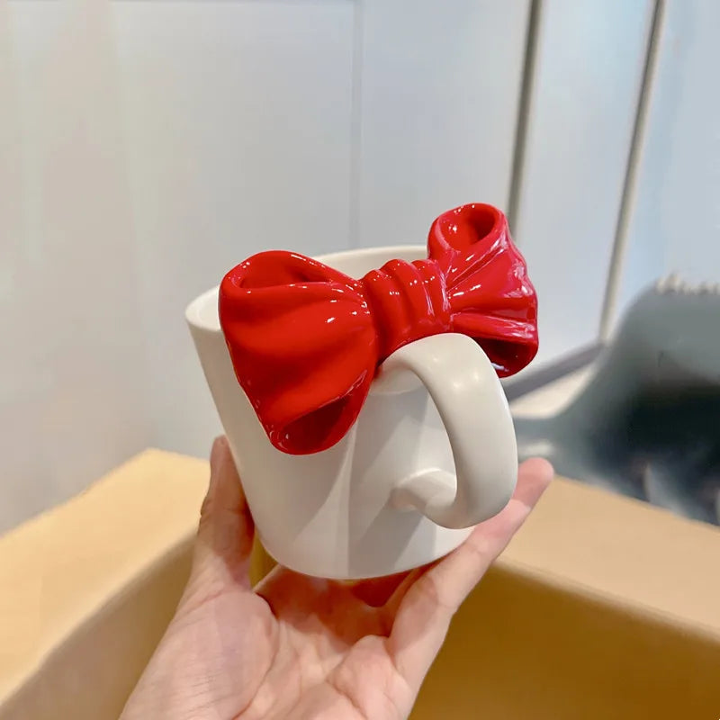DecorBites™ Bow Knot Ceramic Coffee Mug, Handgrip Porcelain Cup, Children Birthday Present