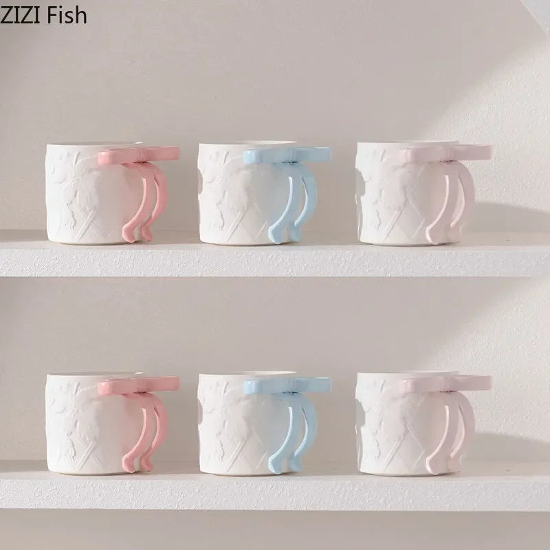 DecorBites™ Bowknot Ceramic Mug & Saucer Set - Tea, Coffee, Juice Cup for Dining Table