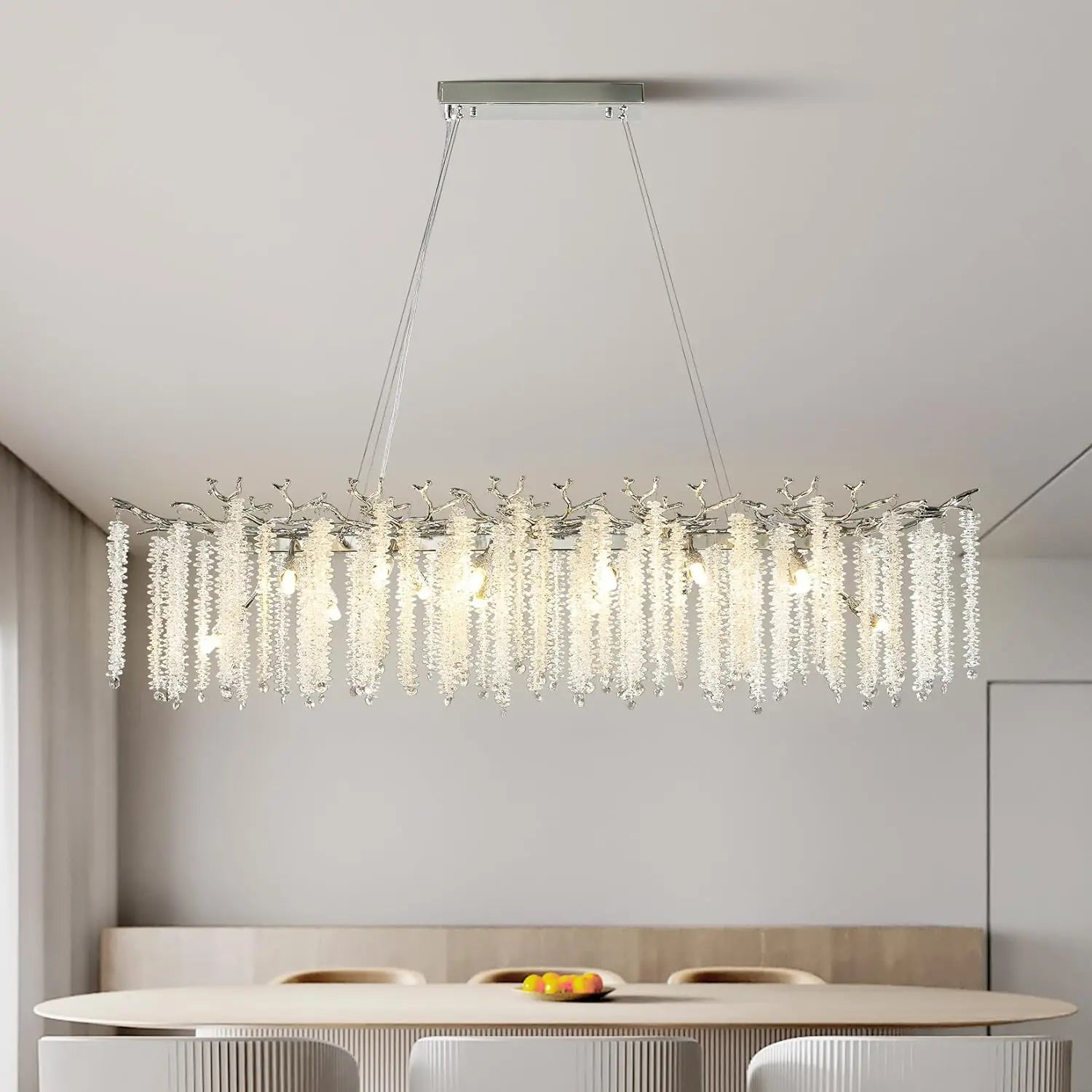 Crafted with high-quality materials and attention to detail, the Decorbites Branch Crystal Chandelier exudes a sleek and polished chrome finish. The chrome long table design enhances the beauty of the crystal elements, creating a mesmerizing play of light and shadows.