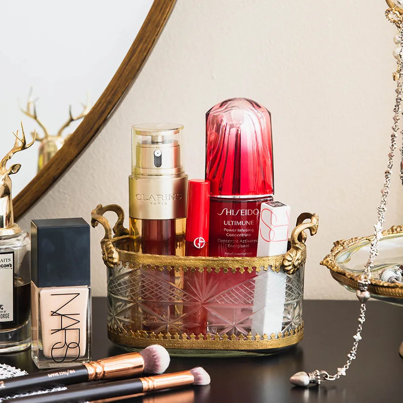 This storage box and snack plate combo is designed to add a touch of elegance to any space. The brass finish exudes luxury, while the carved glass adds a delicate and intricate touch. Whether you use it to store your jewelry, makeup, pens, or snacks, this multifunctional piece will elevate the aesthetic of your room.