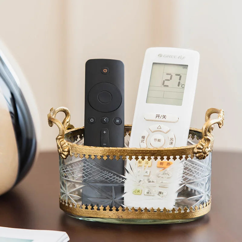 DecorBites™ Brass & Carved Glass Jewelry Makeup Pen Storage Box Dry Fruit Snack Plate