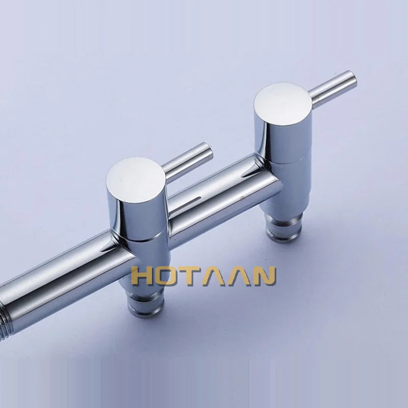 DecorBites™ Brass Dual Hole Garden Faucet Bib-cock for Washing Machine, Toilet, and Garden
