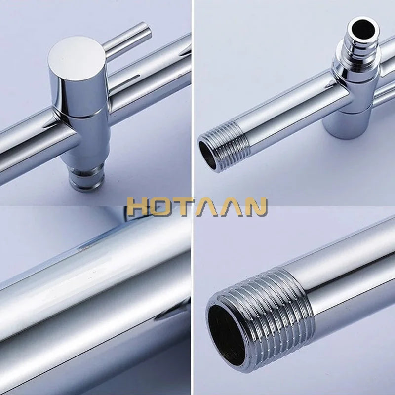 Introducing the Decorbites Brass Dual Hole Garden Faucet Bib-cock, the perfect choice for your washing machine, toilet, and garden needs. Crafted with precision and quality in mind, this elegant piece is designed to elevate your space while providing functionality like never before.