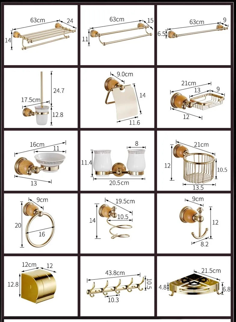 DecorBites™ Brass Jade Bathroom Accessories Set: Towel Bar, Soap Holder, Towel Rack, Glass Shelf