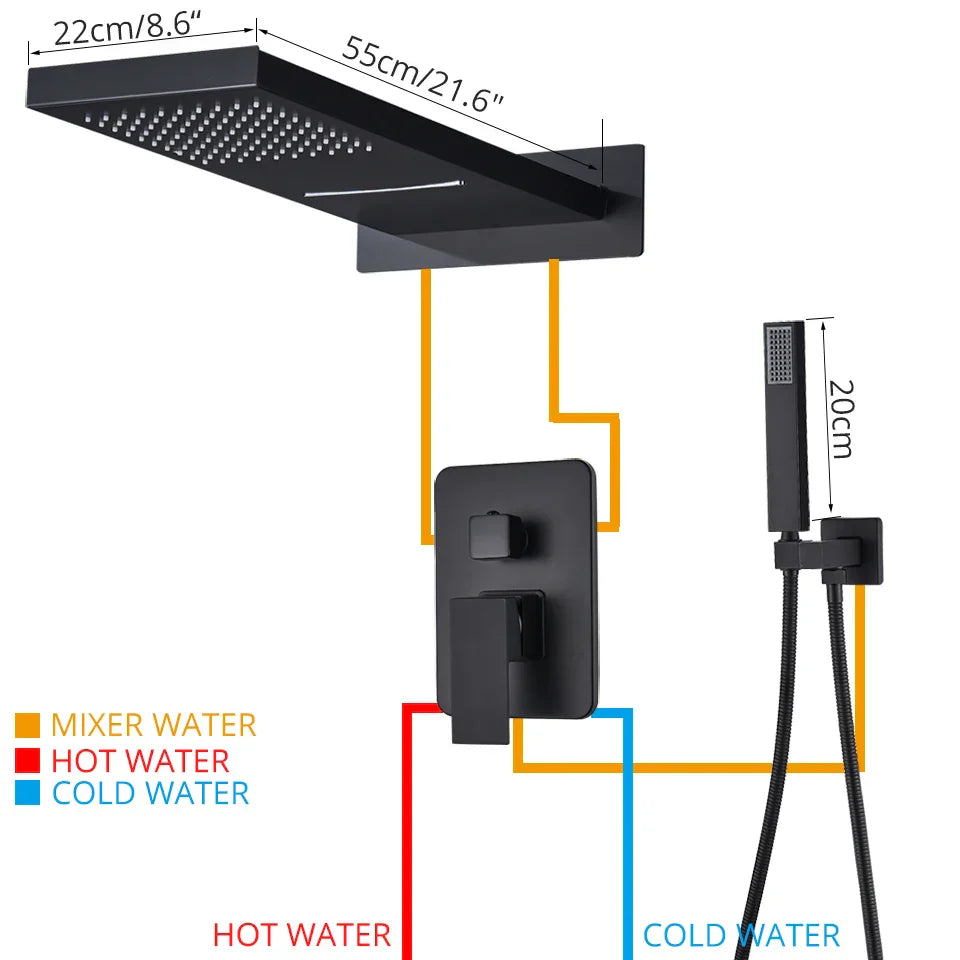 The shower head, made of high-quality brass, delivers a refreshing rainfall and waterfall shower experience. Paired with the A Grade ABS plastic handshower, you can enjoy a customized shower experience that meets your every need.