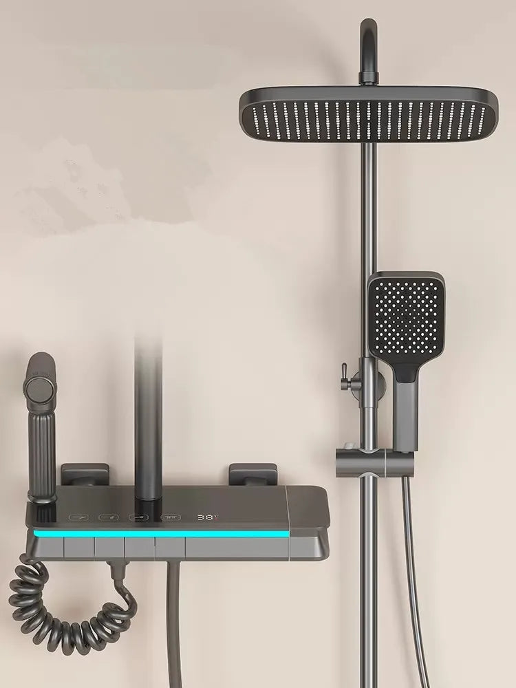 DecorBites™ Brass Shower Faucet Set with Intelligent Atmosphere Light and Pressurized System
