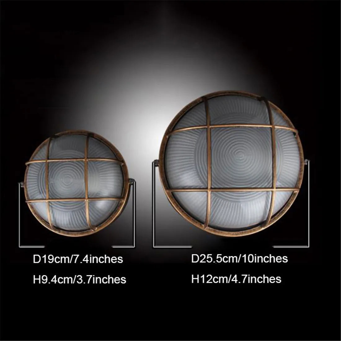 DecorBites™ Bronze Metal Glass Outdoor Ceiling Lamp Flush Mount Waterproof Retro Yard Light