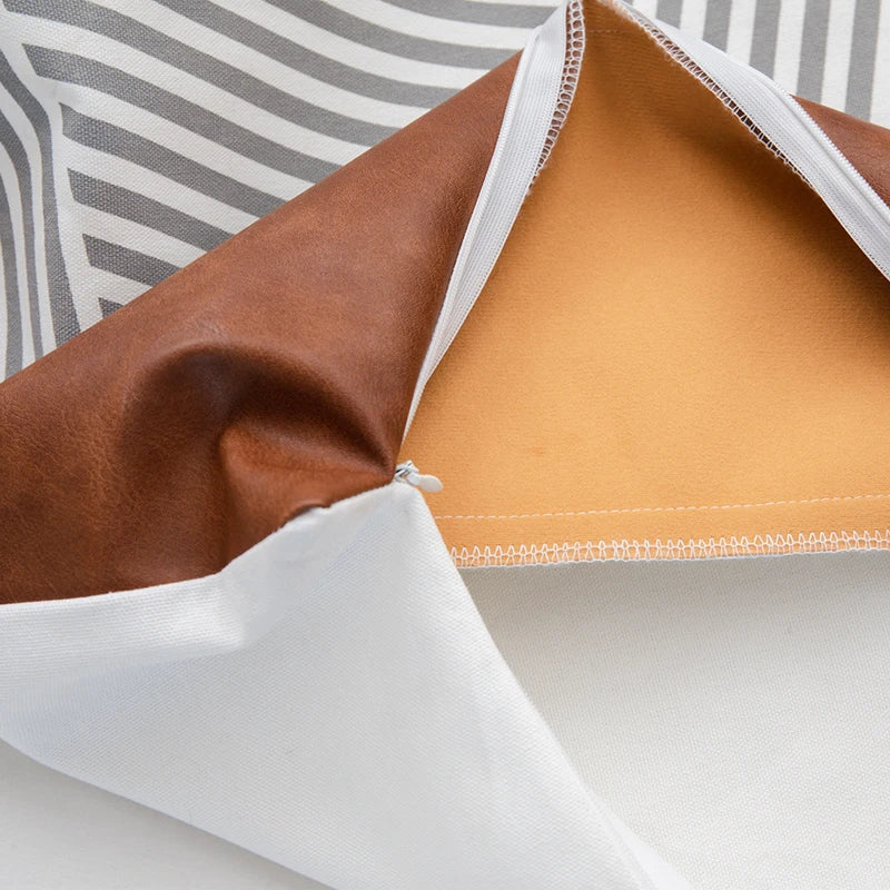 DecorBites™ Brown Faux Leather Pillow Cover for Home Decoration