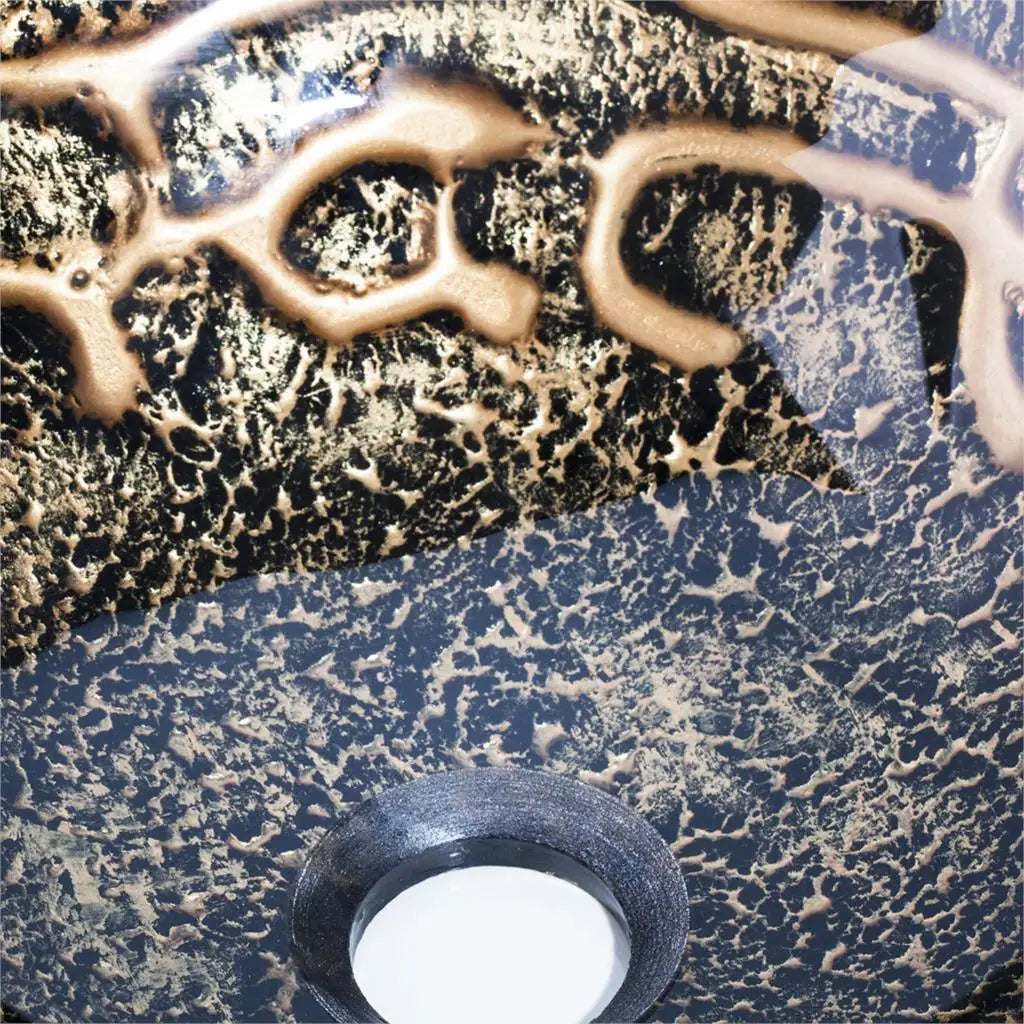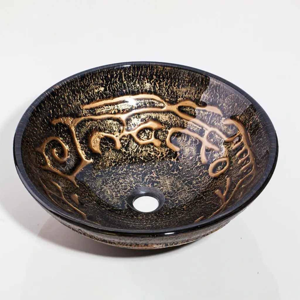 DecorBites™ Brown Hand-Paint Glass Wash Basin Set with Gold Chrome Waterfall Faucet