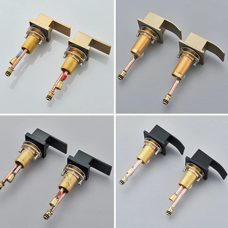 DecorBites™ Brushed Gold Black Dual Handle Waterfall Bathroom Sink Faucet, Deck Mounted