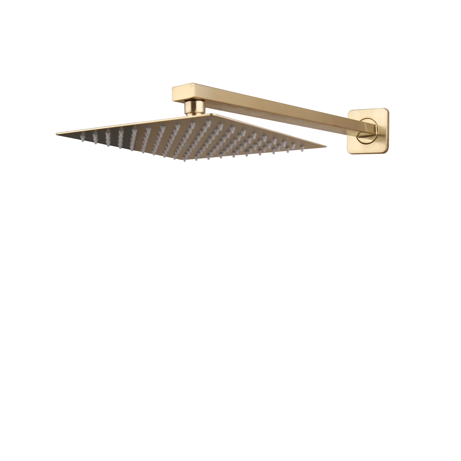 Introducing the Decorbites Brushed Gold Rainfall Shower Faucet Set with Dual Handles and Wall Mount. Elevate your bathroom with this luxurious shower fixture that exudes elegance and sophistication.