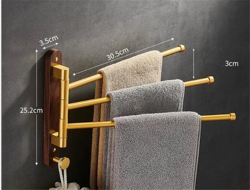 DecorBites™ Brushed Gold Wood Swivel Towel Hanger Wall Mounted Folding Bathroom Towel Bar