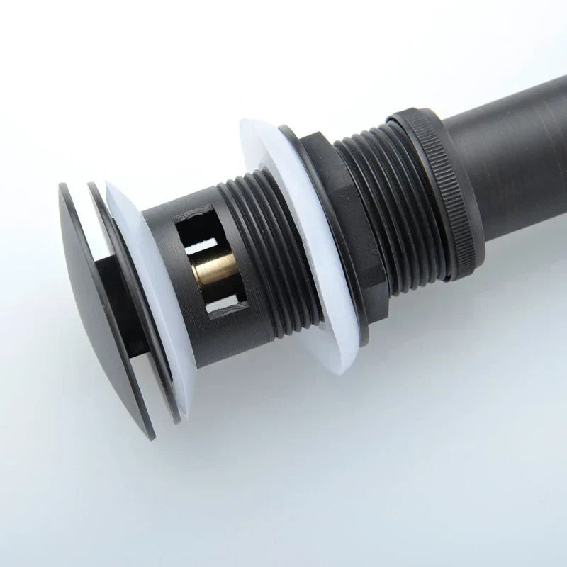 Featuring a gravity flushing floor drain method, this pop-up drain is designed for easy and efficient water drainage. The push-down pop-up style adds a modern touch to your sink, while the electroplated finish in Brushed Nickel/Matte Black ensures long-lasting beauty.