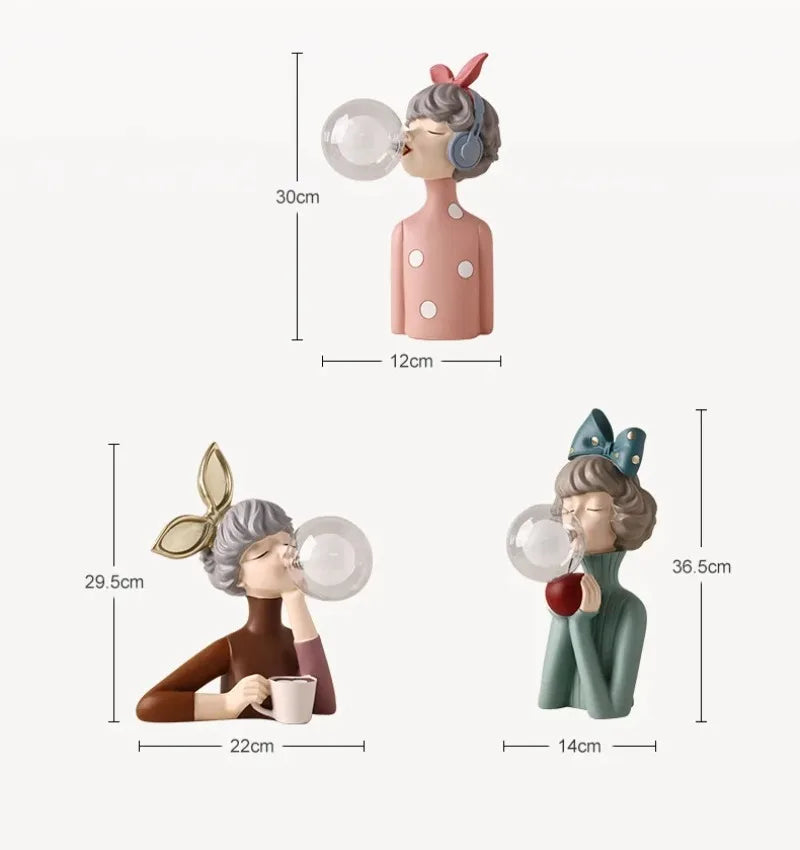This captivating statue is not just a piece of decor, but a statement of individuality and taste. Its unique design will effortlessly elevate the ambiance of your room, creating a warm and inviting atmosphere. Whether placed on your bedside table or desk, the Bubble Girl is sure to spark joy and inspire your imagination.