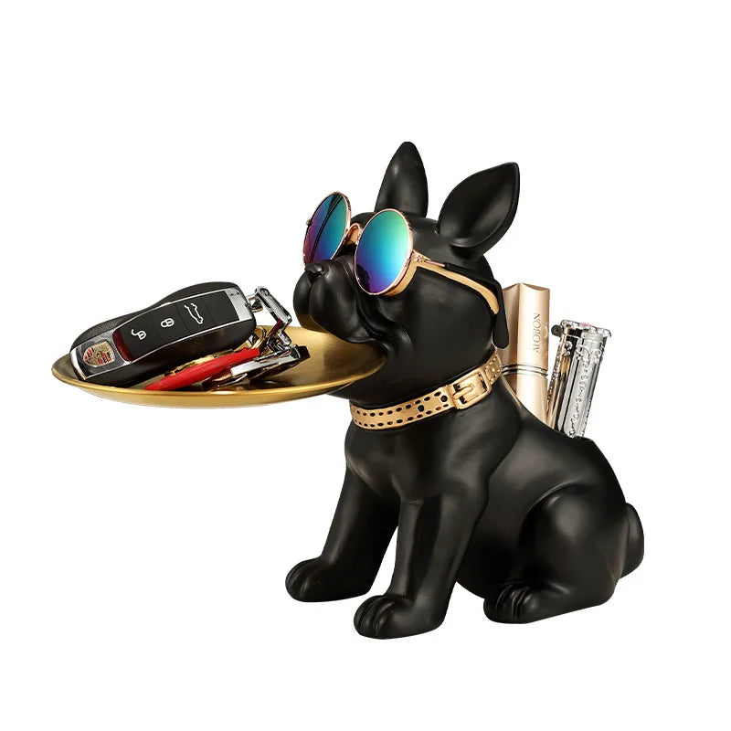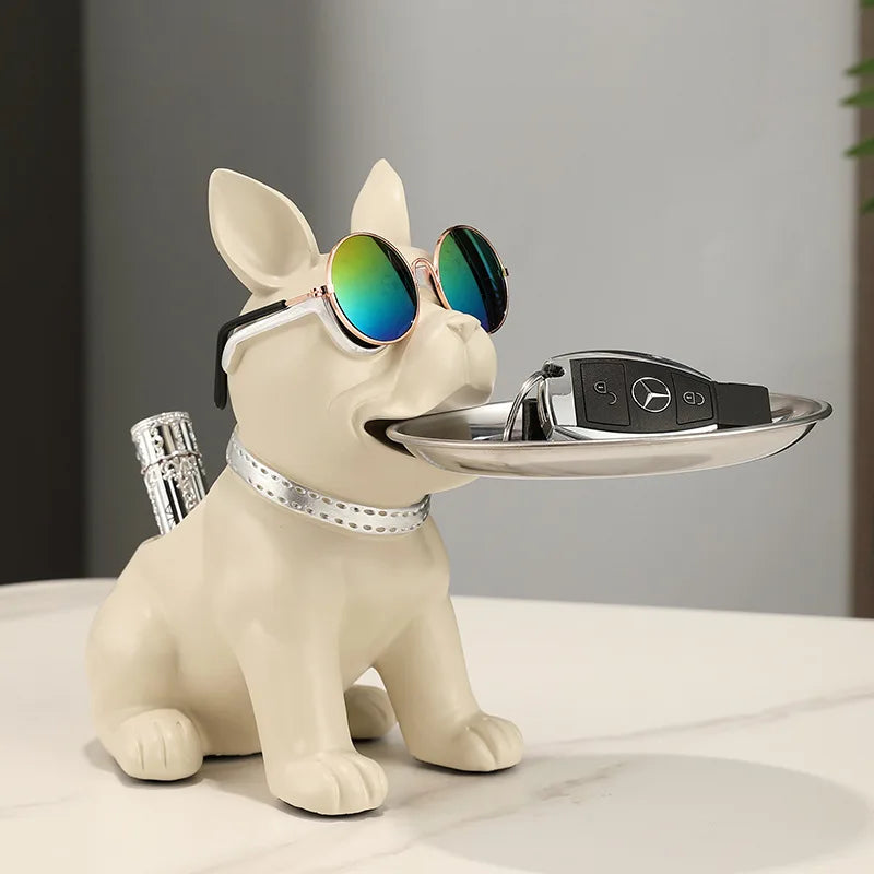 DecorBites™ Bulldog Statue Desktop Storage Office Home Decor Tray Sculpture