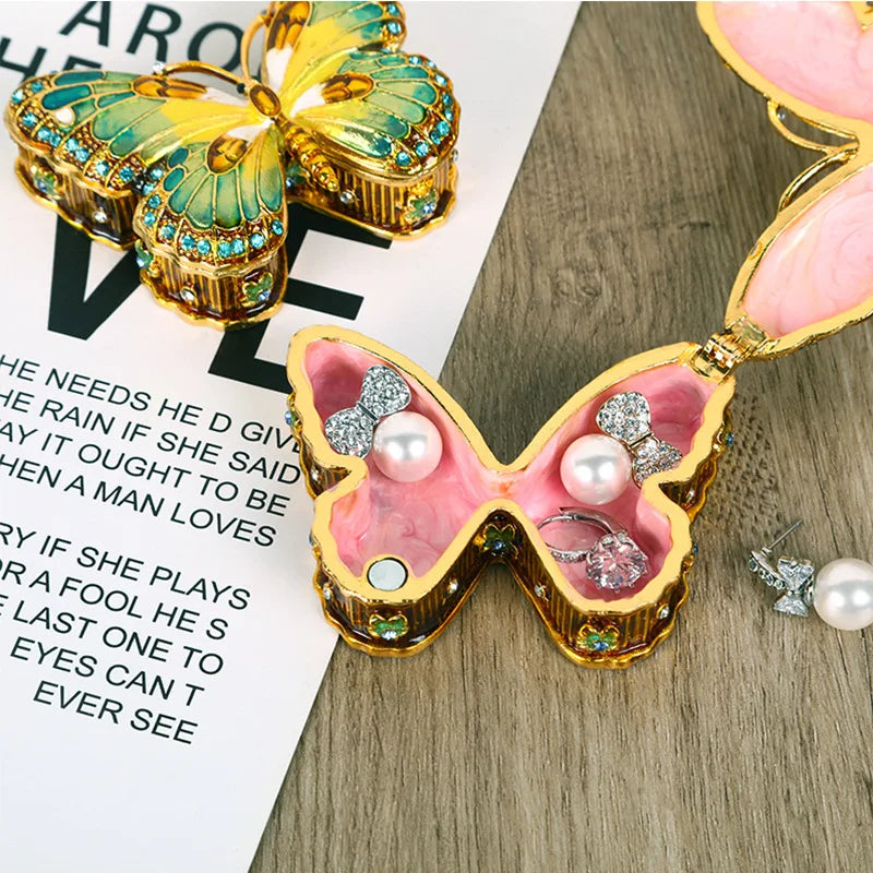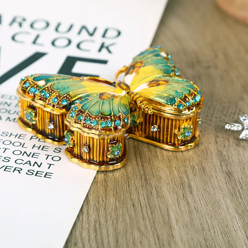 Introducing the Decorbites Butterfly Enamel Gem Jewelry Box - a small earring organizer designed to enhance your home décor and keep your jewelry collection beautifully displayed. Crafted with high-quality materials, this jewelry box is a stylish and functional addition to any room.