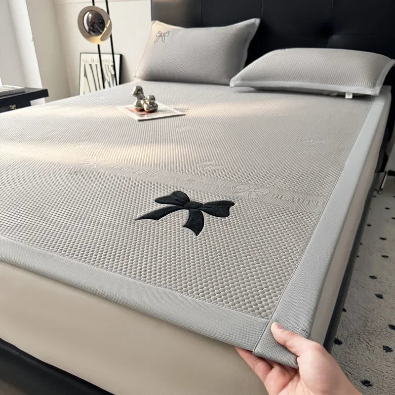 The Decorbites Butterfly Knot Jacquard Ice Bean Cool Mat 2Pcs Set features a solid, cartoon, and jacquard pattern, adding a playful touch to your bed. With sizes ranging from 80x190cm to 120x200cm, this set is suitable for various bed sizes and styles.