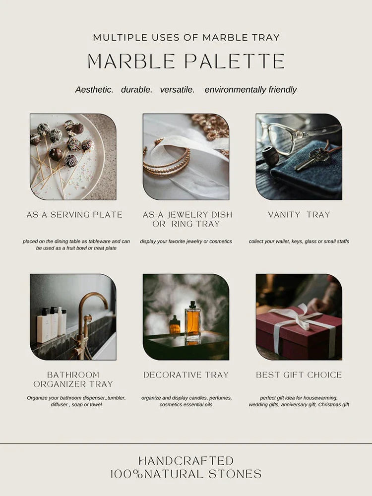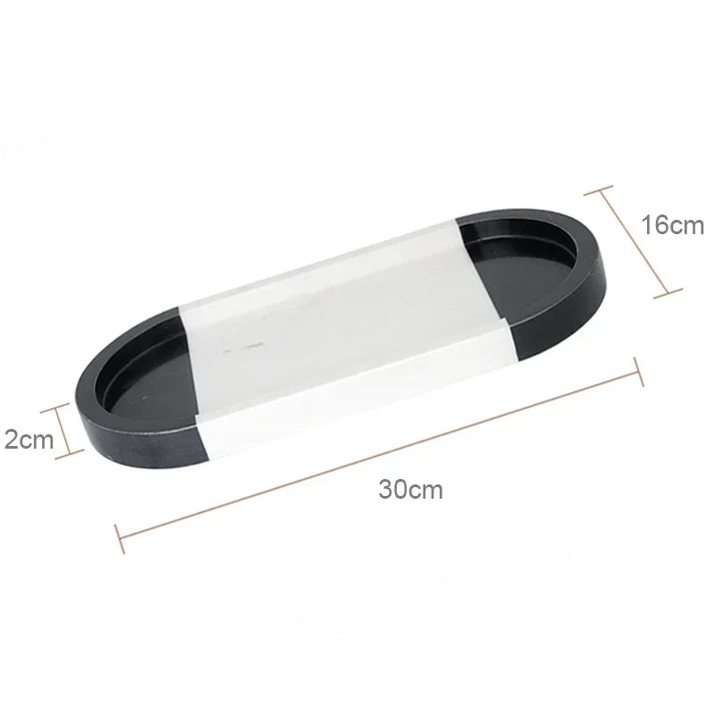 With dimensions of 25x12cm (Size A) and 28x14cm (Size B), this marble tray provides ample space for organizing and showcasing your items with style. Its sturdy construction and European-inspired design make it a functional yet decorative piece for your countertop, kitchen sink, or beauty salon.
