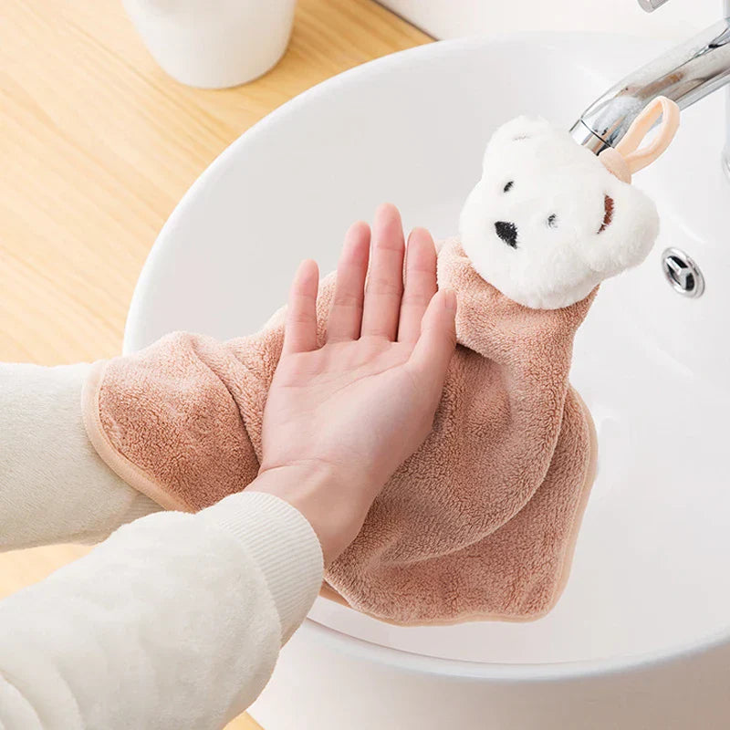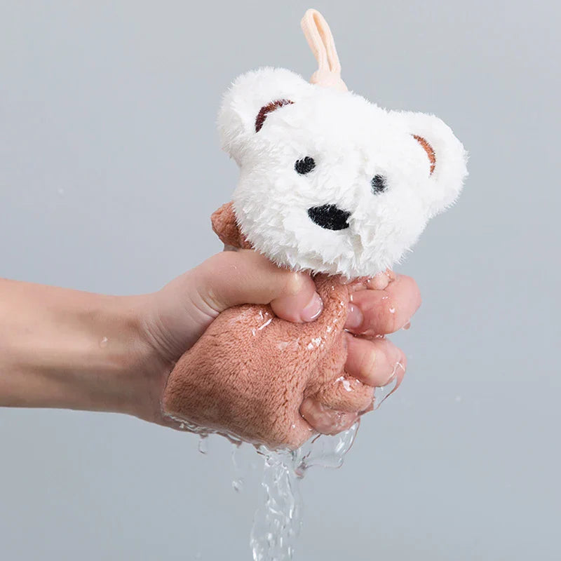 DecorBites™ Cartoon Bear Coral Velvet Hand Towel - Soft Microfiber for Kitchen & Bathroom