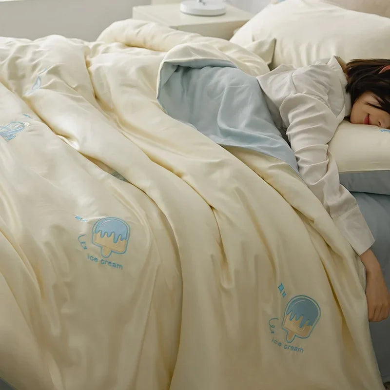 DecorBites™ Cartoon Embroidery Comforter Set with Silky Cooling Touch Fitted Sheet - Luxury Rayon Bedding Set