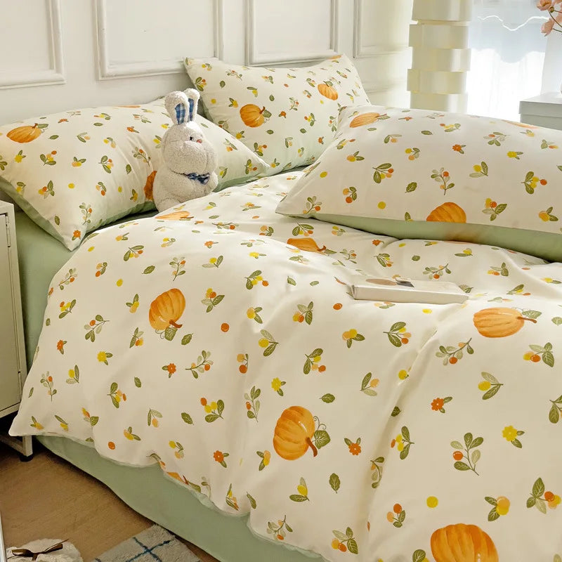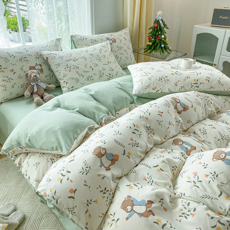 DecorBites™ Cartoon Heart Plant Floral Print 3Pcs Set (Duvet Cover + Pillowcases)