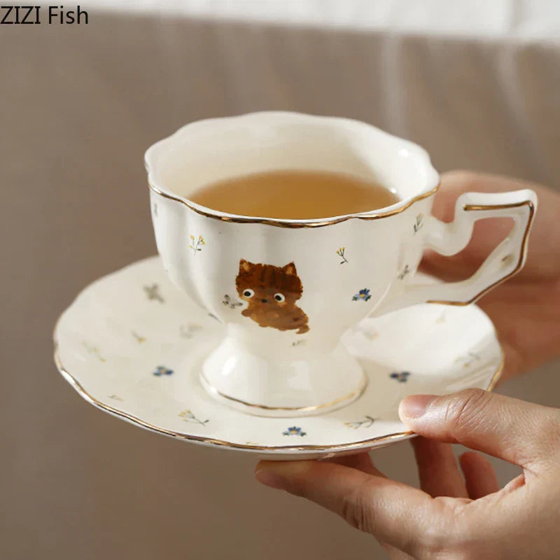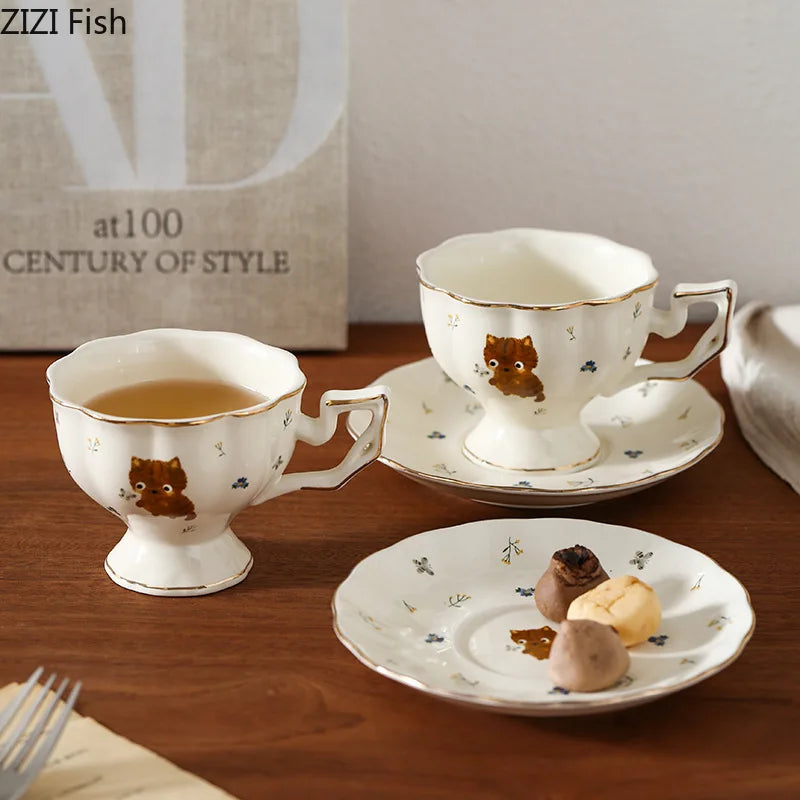 Each set includes a ceramic cup and saucer, exquisitely designed with a handgrip for easy handling. The adorable cartoon kitten pattern adds a touch of whimsy to your daily routine.
