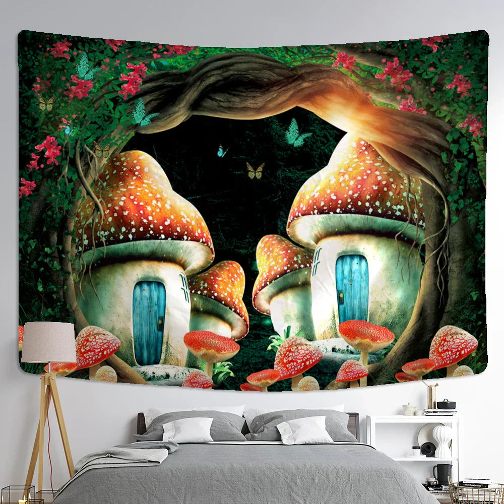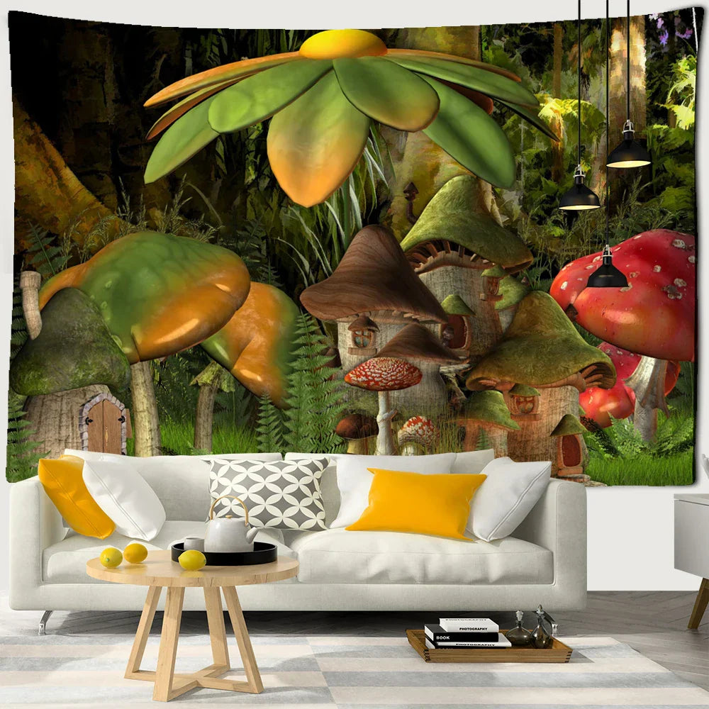 DecorBites™ Cartoon Planet Mushroom Tapestry Wall Hanging for Psychedelic Room Decor