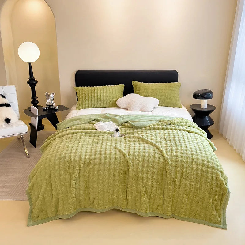 DecorBites™ Cartoon Printed Faux Rabbit Plush Thick Blanket for Office Nap and Sofa Warmth