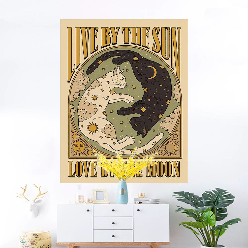 DecorBites™ Cat Tapestry Wall Hanging Tarot Black White Psychedelic Love Star Home Decor