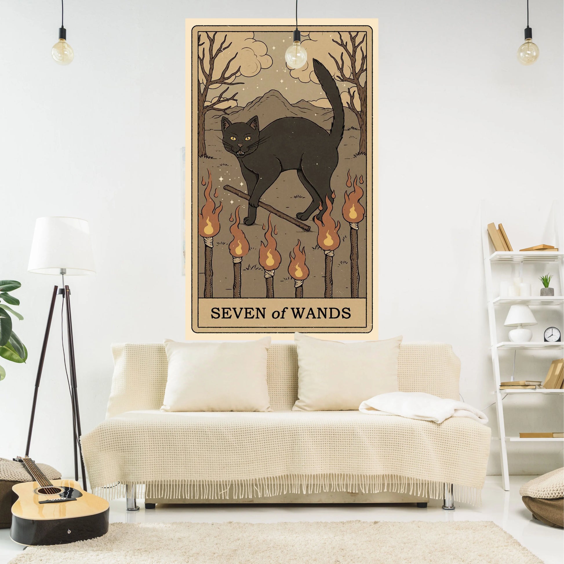 Elevate your living space with the Decorbites Cat Tapestry Wall Hanging, a mesmerizing piece that exudes a blend of mystique and charm. Crafted from high-quality 100% Polyester, this tapestry showcases a captivating design featuring a Tarot-inspired motif in striking black and white hues.