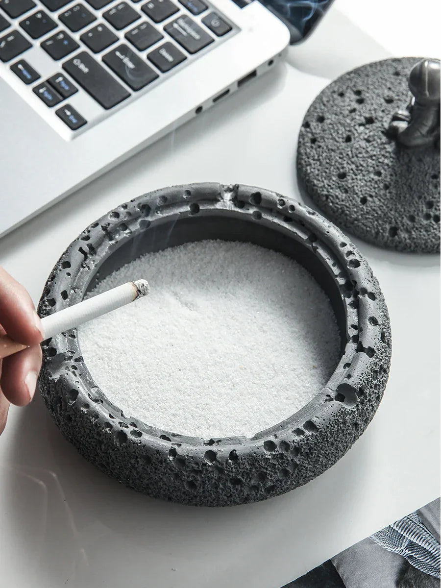 DecorBites™ Cement Astronaut Ashtray with Lid - High Temperature Resistant Cigar Ashtray