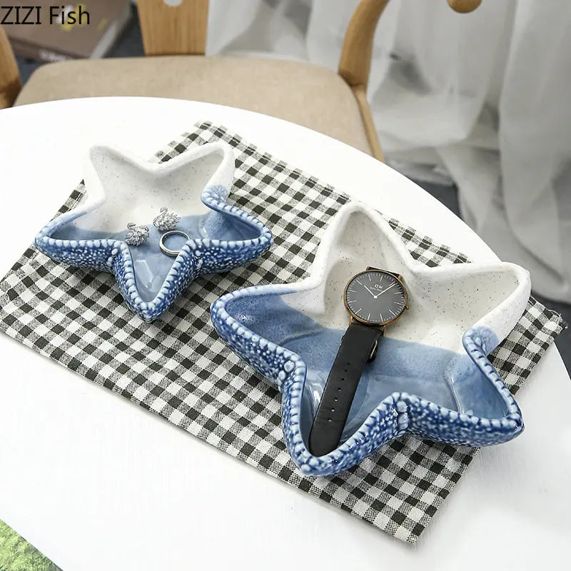 DecorBites™ Ceramic Marine Life Decorative Storage Tray for Dresser or Tabletop
