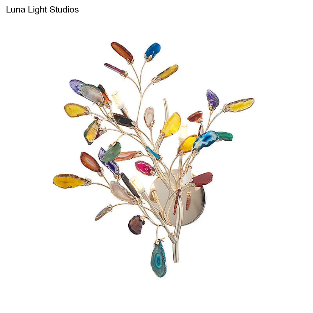 DecorBites™ Champagne Agate Leaf Wall Sconce: Artistic Lighting Fixture for Bedroom