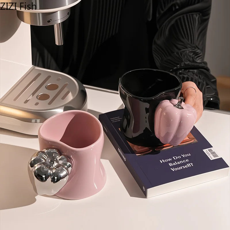 DecorBites™ Chili Handle Cup & Saucer Porcelain Coffee Mug Tea Teacup Juice Cup