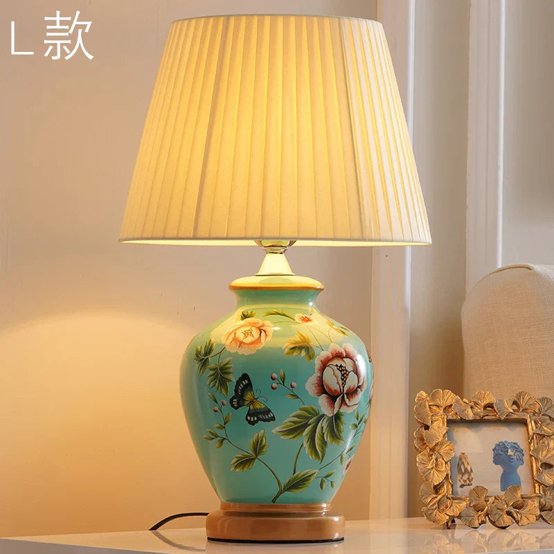 DecorBites™ Chinese Bird Flower Ceramic Table Lamp for Bedroom Living Room Bedside