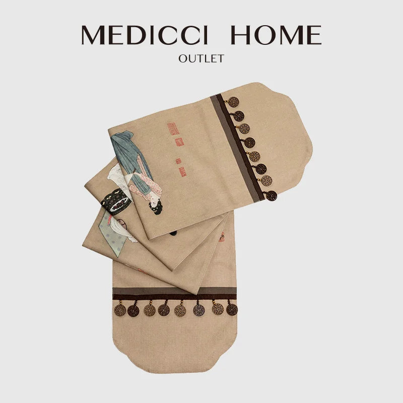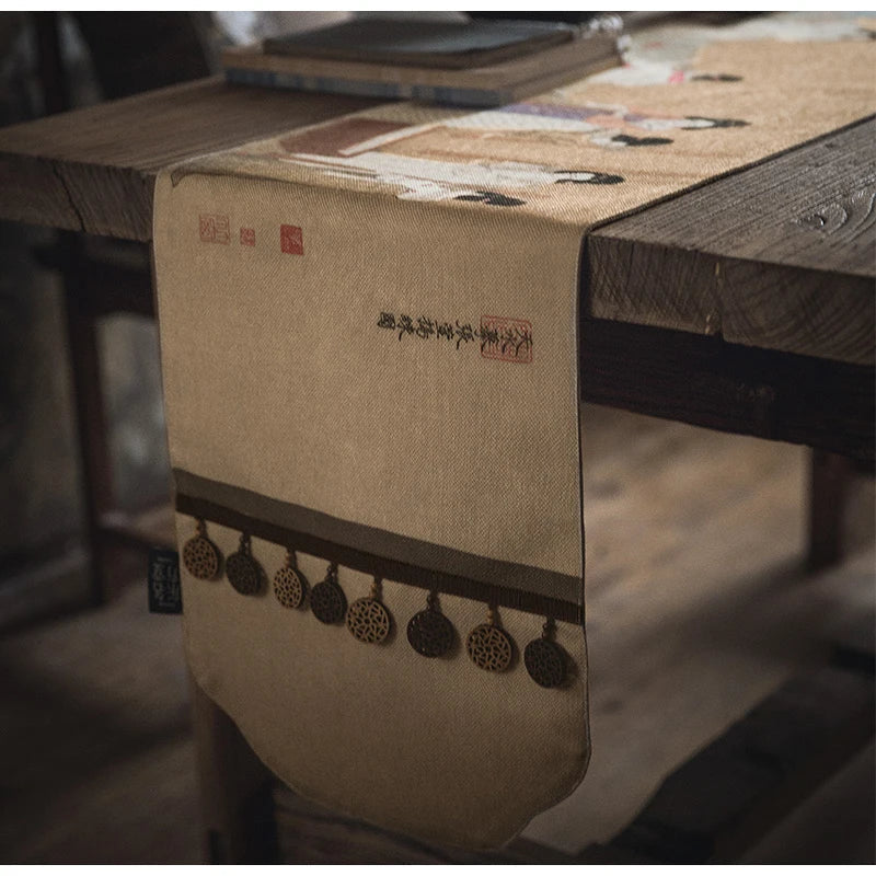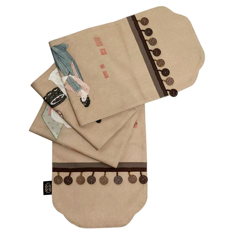 DecorBites™ Chinese Painting Women Print Table Runner Handmade Traditional Chic Decor