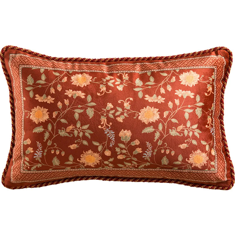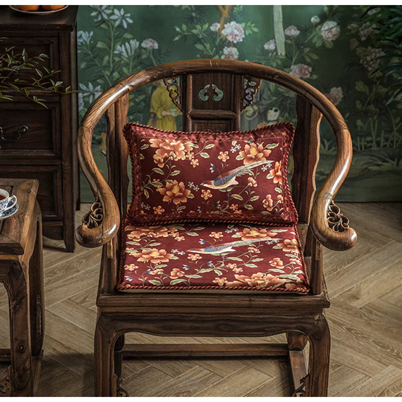 DecorBites™ Chinese Peony Flower & Bird Print Vermilion Pillow Cover